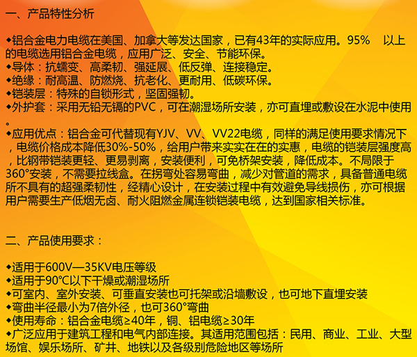 鋁合金電纜:鋁合金電纜ZR-YJLHV 瀏覽:3521